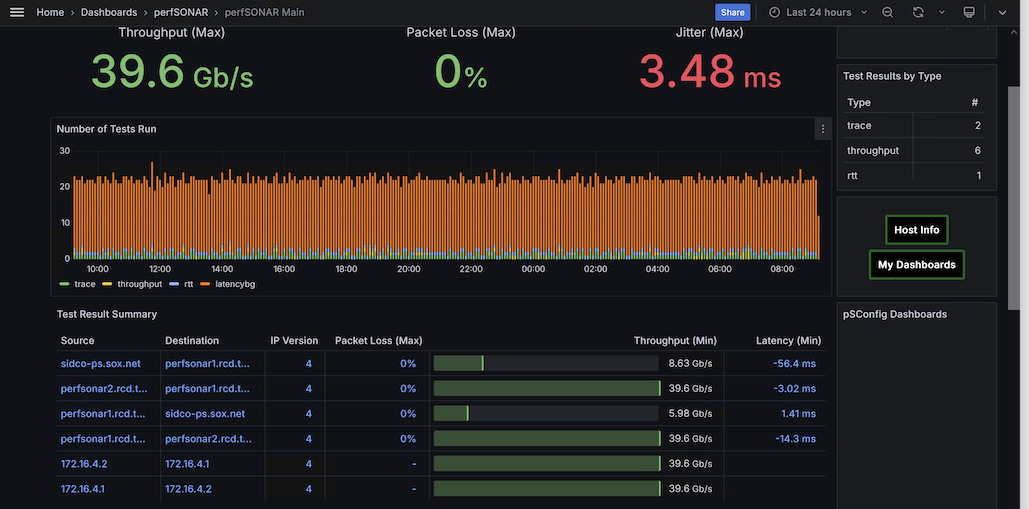 Research Computing and Data staff manage network monitoring tools to proactively identify performance problems, both inside and outside the research network. Metrics include bandwidth, latency, and jitter (consistency), and historical data is stored for later analysis and diagnostics.